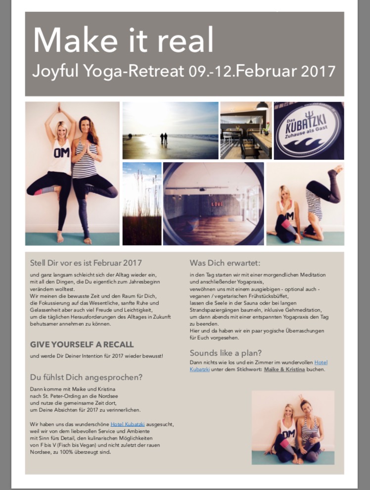 Yoga Retreat Nordsee 2017 ist eine wichtige Information, die von Fotos und HD-Bildern begleitet wird, die von allen Websites der Welt stammen. Laden Sie dieses Bild kostenlos in High Definition-Auflösung mit der unten stehenden Option "Download-Schaltfläche" herunter. Wenn Sie nicht die genaue Auflösung finden, nach der Sie suchen, wählen Sie Original oder eine höhere Auflösung. Sie können diese Seite auch einfach speichern, sodass Sie sie jederzeit anzeigen können.