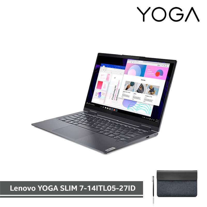 Lenovo yoga slim 7 14itl05 82a30021mj 14 laptop notebook intel core i7 1165g7 4 7ghz 16gb lpddr4x ram 512gb ssd intel iris xe graphics windows 10 home touchscreen. Jual laptop lenovo yoga slim 7 14itl05 1bid dengan harga rp18 749 000 dari toko online disco net kota surabaya. This stylish laptop will power you through anything combining the latest 10th gen intel core processing with up to 14 hours of battery life.
